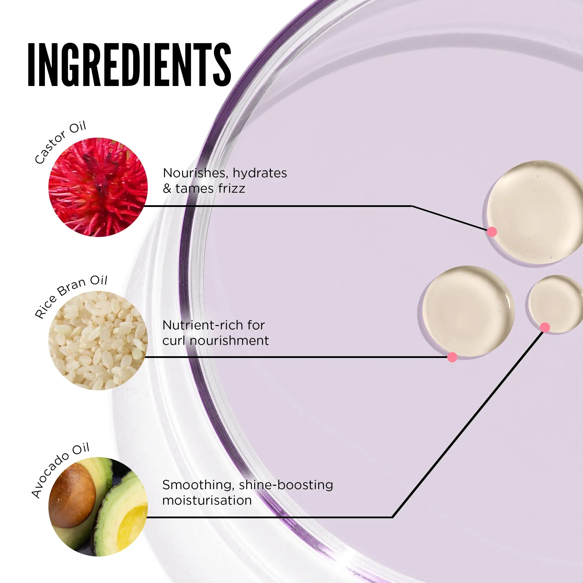 Smooths frizz and enhances curl definition, helping curls look more defined and polished.