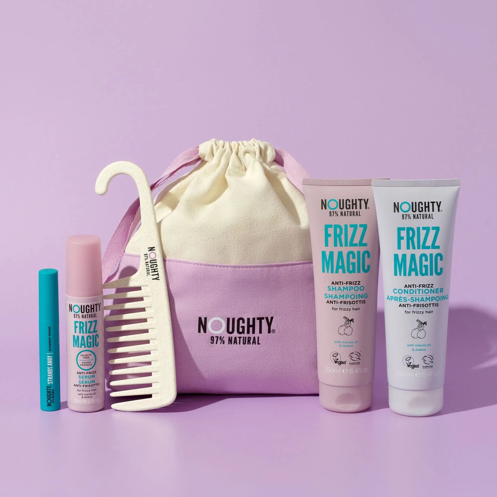 Introductie van het Miracle Of Frizzmas Gift – jouw perfecte toverdrank voor kroeshaar! Deze kit bevat ook de NIEUWE Strands Away Flyway Wand, jouw multifunctionele geheim voor gladdere stijlen en vollere wenkbrauwen. Maak ruimte voor gladder, beter beheersbaar haar en creëer je eigen kerstwonder.