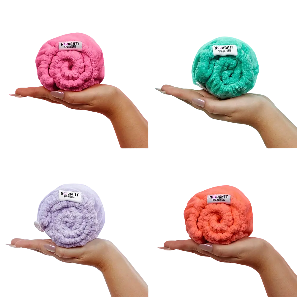 Breng de gedraaide handdoek terug naar je nek en zet vast met de knop.